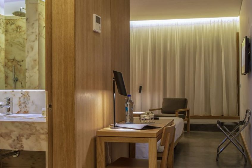 Some of the hotel’s architectural elements have been carefully designed to reflect the artisan process of producing olive oil inside. A striking example of this is the “pátio das oliveiras” or olive tree patio, the staircase assumed as the central protagonist of the hotel reception, the exhibition space, where you can soon discover old and more recente pieces, linked to olive oil production and tasting, the indoor pool where you can enjoy perfect relaxation moments, the grocery store and the restaurant.