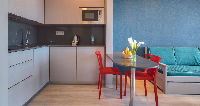 All the hotel’s rooms are nicely decorated in a functional style and the apartments and studios are equipped with a kitchenette.