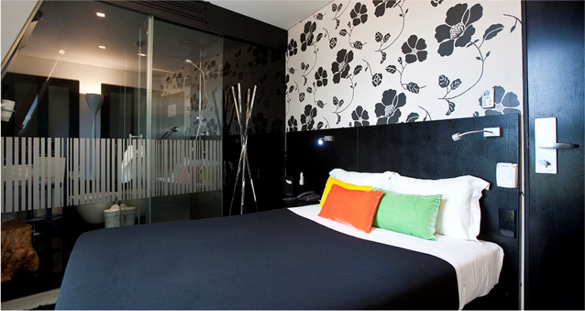 As acomodações climatizadas do Funchal Design Hotel estão decoradas com padrões florais elegantes. Incluem uma televisão LCD e uma casa de banho parcialmente transparente, com paredes em vidro.