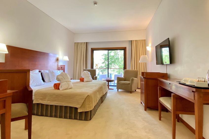 The 44 rooms and 4 suites of modern and timeless design at the Bio Hotel Quinta da Serra offer the perfect balance between elegance and tranquillity. With breathtaking views of the surrounding natural landscapes, each room has been designed with comfort and functionality for a relaxing stay in an enchanting natural setting