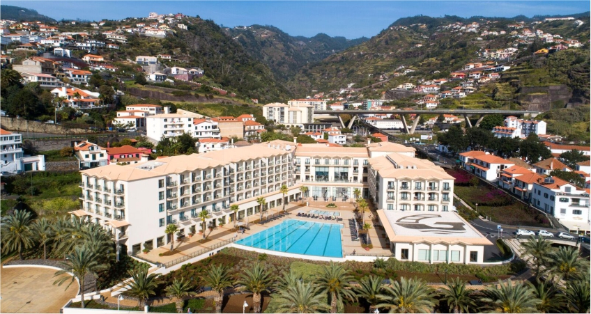 Este hotel na Madeira, a cinco minutos do aeroporto, soma 262 quartos acolhedores e sofisticados. E inclui dois restaurantes, dois bares, piscina exterior e spa, com piscina interior aquecida, sauna, jacuzzi, banho turco, ginásio e salas para massagens.