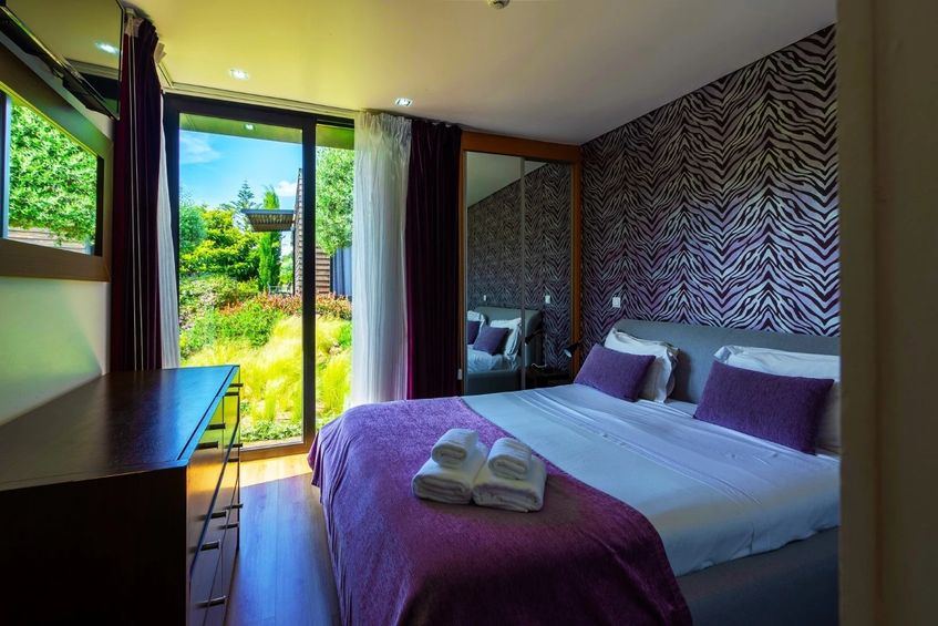 Quartos, Apartamentos e Villas para toda a familia. Desfrute de todo o conforto e da vista extraordinária para o jardim.