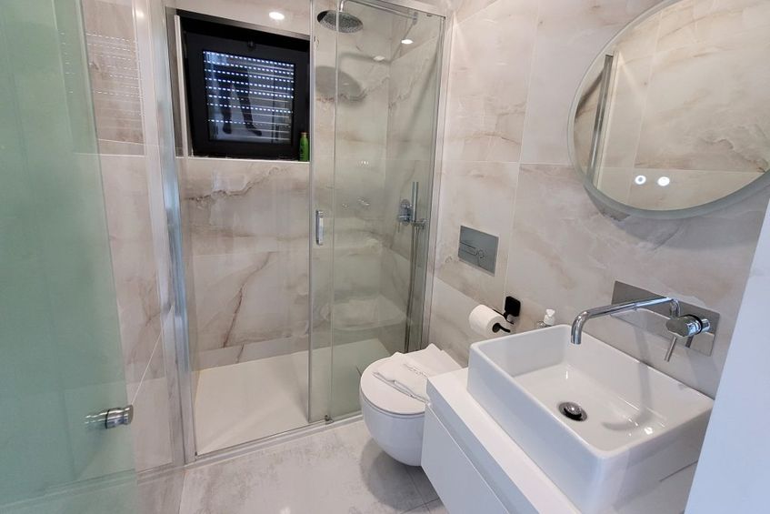 It also has a terrace and an outdoor swimming pool.