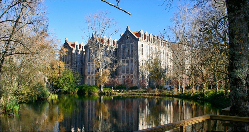Pavilhões do Parque D. Carlos I Estes edifícios tinham a finalidade de ser a área de internamento do Hospital, mas nunca foram utilizados para tal. Ao longo dos tempos, estes albergaram várias instituições da cidade. Uma grande ambição de Rodrigo Berquó para as termas, era transformar o Hospital juntamente com os Pavilhões, numa estância termal, para serem uma das estâncias mais importantes da Europa do século XIX. Os Pavilhões foram edificados junto ao lago do Parque, uma imagem que viria a tornar-se num dos cartões-de-visita da cidade.