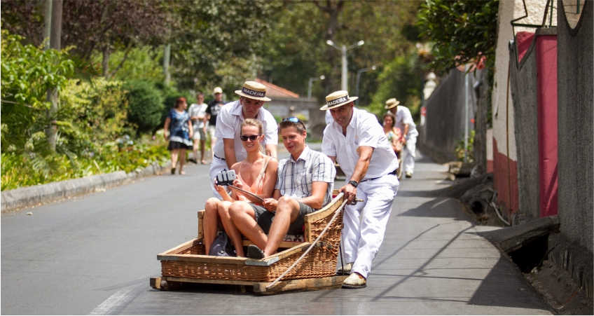 É do Monte que partem os tradicionais carros de cesto, feitos em vime e montados sobre patins de madeira, que são arrastados por dois homens, os "carreiros" (tipicamente vestidos de branco e com chapéu de palha) os quais controlam a velocidade do carro com a ajuda de cordas. O percurso de 2 km vai desde o Monte até ao Livramento, em aproximadamente 10 minutos e é o ideal para complementar a subida ao Monte por teleférico.