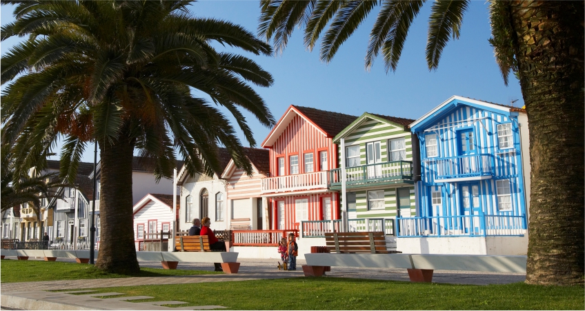 sugestão das cores vivas das casas típicas, os palheiros, pelo forte contraste dado pelo constante ímpeto das ondas do Oceano, dum lado da povoação, e a calma das águas da Ria, do outro. O pedestrianista poderá ainda confrontar-se com a vida frenética do mercado do peixe, com o fascinante espectáculo das proas das embarcações reflectidas nas águas levemente onduladas da Ria, no Cais dos pescadores, e com a cordialidade dos habitantes. O dia-a-dia dos pescadores, as redes deixadas ao sol, as decorações marinhas que se consegue observar através das janelas nas casas típicas, reflectem a origem desta povoação, intimamente ligada à actividade piscatória.