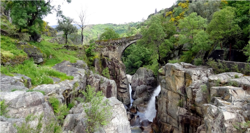 A descida até à ponte é feita a pé, uma vez que a estrada é estreita e rochosa impossibilitando qualquer meio de transporte motorizado. Pelo caminho, um miradouro de onde é possível observar parte do rio, e a ponte, ao longe. Em dias de sol, a paisagem é deslumbrante e o silencio reconfortante. Erguida na Idade Média e construída no início do século XIX, encontra-se classificada como Imóvel de Interesse Público desde de 30 de Novembro de 1993.
