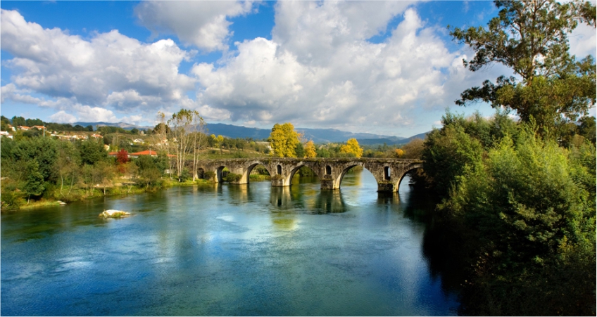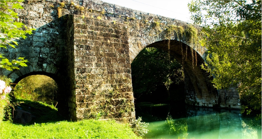 Monumento Nacional, de arquitetura civil pública, medieval, construído na Idade Média na freguesia de Caldelas, sob o rio Homem e faz ligação entre a freguesia de Caldelas e o concelho de Vila Verde. É constituída por tabuleiro plano sobre três arcos desiguais, com dois contrafortes com talhamar de contorno triangular e talhante de contorno rectangular.