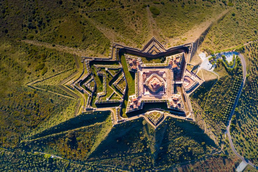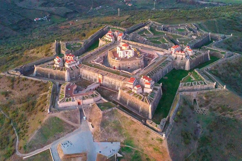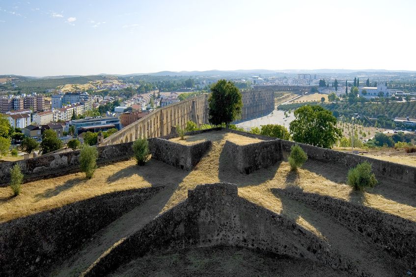Somos recebidos na cidade pelo grandioso Aqueduto da Amoreira, com 7 km e 843 arcos, construído pelo mesmo autor da Torre de Belém, em Lisboa, o arquiteto Francisco de Arruda. O tamanho e os números impressionam tanto como o que vamos descobrir mais à frente. Afinal de contas, entramos na maior fortificação abaluartada do mundo, cujas estruturas defensivas em forma de estrela e com um perímetro de cerca de 10 km são um testemunho único da evolução da estratégia militar até ao século XIX. Foram muito importantes nas lutas com Espanha pela Independência de Portugal, em meados do séc. XVII, e serviram de base ao General Wellington, durante as Guerras Napoleónicas, no início do séc. XIX.