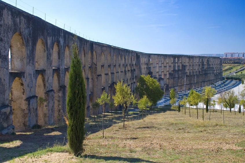 O Aqueduto da Amoreira é uma obra gigantesca que se desenvolve desde a nascente principal em galerias subterrâneas numa extensão de 1367 metros e depois ao nível do terreno e em arcadas por mais de cinco quilómetros e meio que chegam a superar os 30 metros de altura. Possibilitou uma verdadeira era de progresso na cidade depois da sua construção, uma vez que abastecia uma multiplicidade de fontes intra-muros.