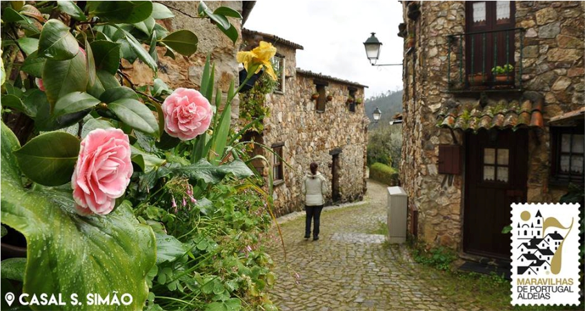 A entrada da aldeia de Casal S. Simão, no concelho de Figueiró dos Vinhos, é extremamente fácil conduzindo às 23 habitações, que preservam a arquitectura original da Aldeia e os materiais da região, de um lado e do outro.