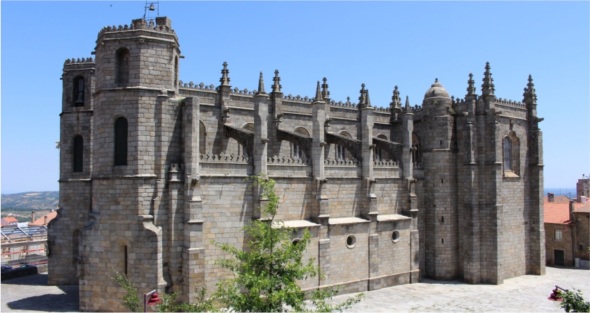 Na cidade mais alta de Portugal um ar de montanha, leve e saudável, corre por entre as ruas medievais a que o granito dá nobreza e uma cor morena. É essa a cor da Sé Catedral. Alta, imensa e imponente, tem aspeto de fortaleza com as possantes torres erguendo-se como símbolo de defesa da fé e do território. E se o exterior nos impressiona pela inspiração do desenho e da decoração gótica, lá dentro surpreende pela esmagadora altura das naves e um enorme retábulo todo esculpido em pedra.