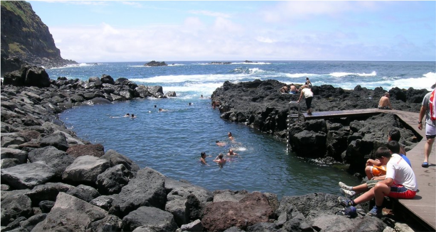 Zona balnear e termal com nascentes de águas terapêuticas já referenciadas desde o séc. XVI, a uma temperatura que varia entre os 18º C e os 28º C. A temperatura varia com a maré, já que a concentração de água aquecida também varia.