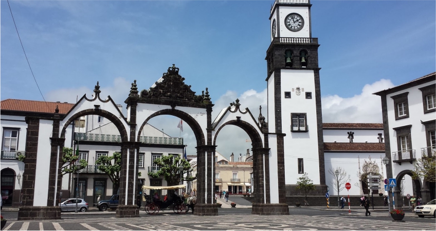 Debruçada em redor de uma baía natural, a cidade de Ponta Delgada possui uma rica história e património construído. As Portas da Cidade são o ponto de partida perfeito para a explorar da cidade, rapidamente identificadas pelos seus três arcos que fazem a ligação entre a zona marginal e a Praça da República. De prestar atenção à arquitetura típica, de que ressalta o contraste entre o branco das paredes e os pormenores em basalto, embelezada com varandas em ferro rendilhado. Os seus monumentos mais emblemáticos, são a Igreja matriz de São Sebastião, do século XV, a Igreja de São José e a de São Pedro, o Convento e Capela de Nossa Senhora da Esperança (é aqui que se venera a imagem do Senhor Santo Cristo dos Milagres), o antigo Colégio dos Jesuítas, o Palácio de Sant’Ana (onde está instalada a Presidência do Governo Regional), o Museu Carlos Machado, o Forte de São Brás, os Paços do Concelho, e ainda o renovado Coliseu Micaelense e o bem conservado Teatro Micaelense, entre outros.