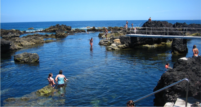 As piscinas naturais são uma dádiva da natureza que o Homem tem conseguido proteger e adaptar para usufruto nos dias mais amenos. Na ilha Terceira existem diversos locais que merecem uma visita e um mergulho. As Piscinas Naturais da Silveira, por se localizarem muito perto do centro de Angra do Heroísmo, são uma das mais concorridas da ilha. Ostenta a Bandeira Azul e dispõe de diversos equipamentos de apoio. Já a Zona Balnear dos Biscoitos é considerada por muitos como a melhor da ilha. As piscinas naturais, esculpidas por rochas vulcânicas, contam com o apoio de diversos equipamentos, incluindo áreas para banhos de sol. Na costa leste da ilha, a Zona Balnear de Porto Martins aproveita a baía que lhe dá nome, bem como o trabalho da natureza, que concedeu a esta área diversas piscinas resultantes da antiga atividade vulcânica.