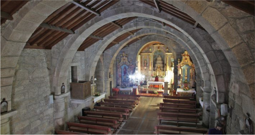 Admire ainda a fachada da igreja – atentando no brasão com as armas cistercienses –, atravesse o magnífico portal ogival de múltiplas arquivoltas e descubra o interior da igreja, dando especial atenção ao altar maneirista e ao retábulo de talha dourada barroco. Não deixe de conhecer este imponente templo românico, classificado como Monumento Nacional.