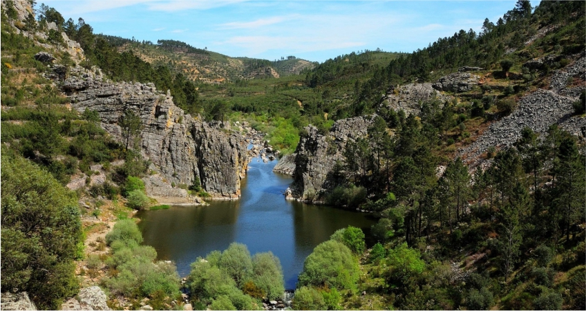 O miradouro geomorfológico das Corgas estende-se no dorso das montanhas, por entre a urze e a giesta. O olhar alcança dezenas de quilómetros até à curiosa forma da Serra das Talhadas, que materializa a megadobra em U – o Sinclinal do Ródão.