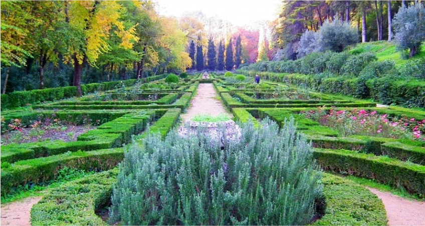 No meio da vegetação frondosa de que fazem parte ciprestes, olaias, carvalhos e oliveiras seculares, destaca-se um templo miniatural, uma torre cilíndrica que pelo seu formato é conhecida como a "Charolinha". Este templete em pedraria lavrada parece uma réplica das torres-lanterna do Convento de Cristo e foi construído segundo o plano de João de Castilho, arquiteto encarregue das obras renascentistas no convento. Rodeada por um tanque circular, a Charolinha é uma "Casa de fresco" que parece isolada do mundo, um retiro secreto e oculto a que se acede transpondo uma ponte de pedra.