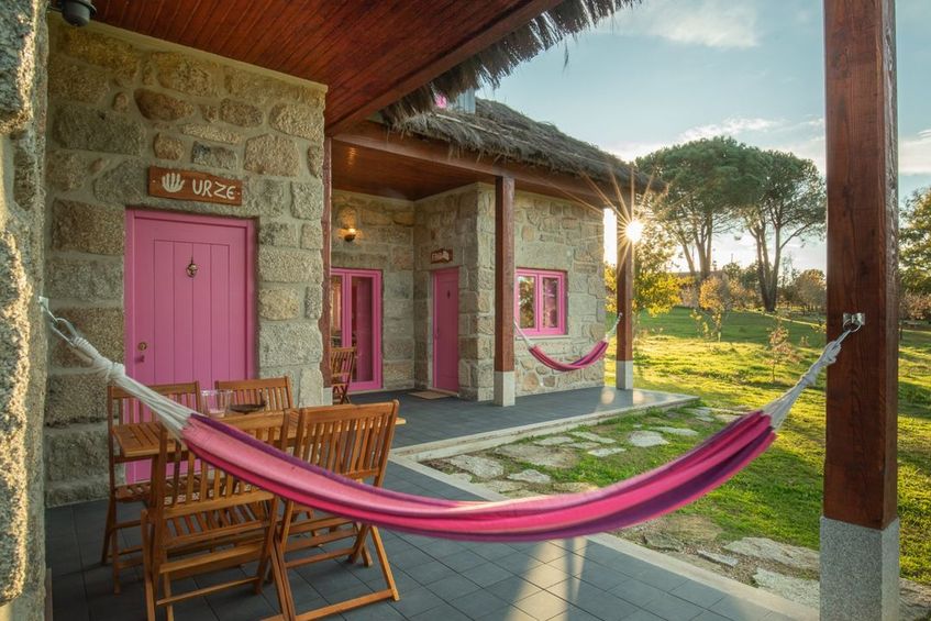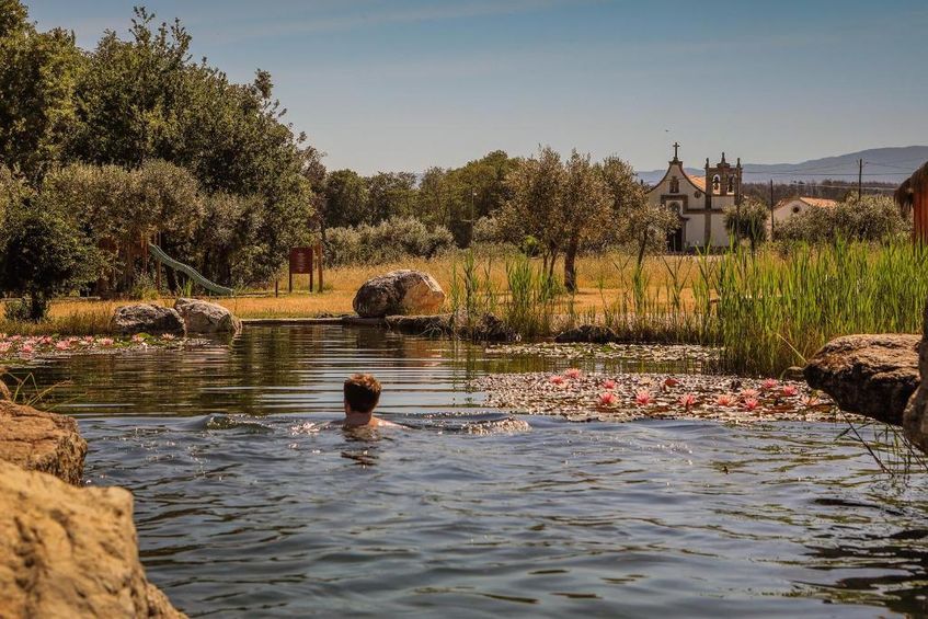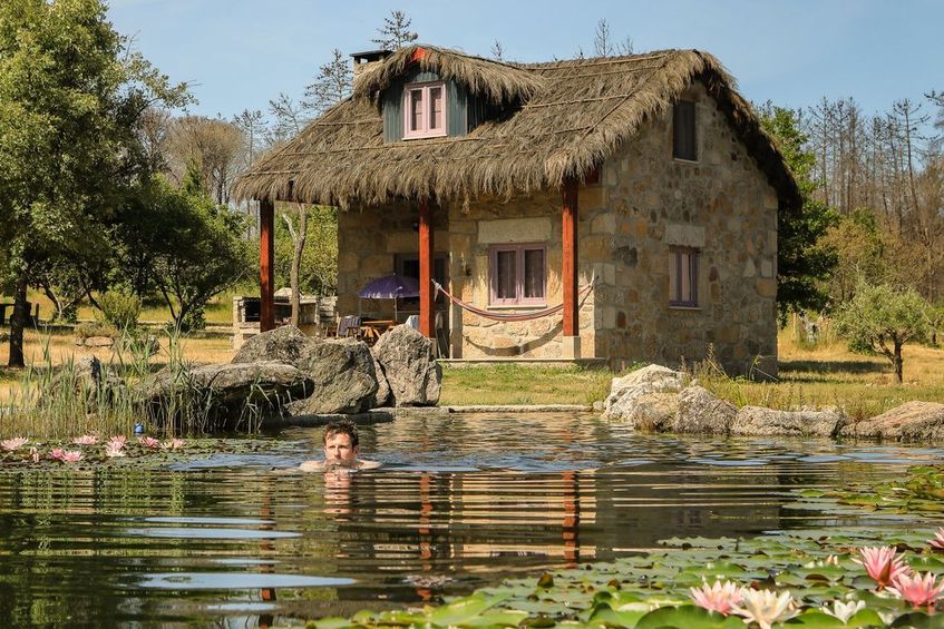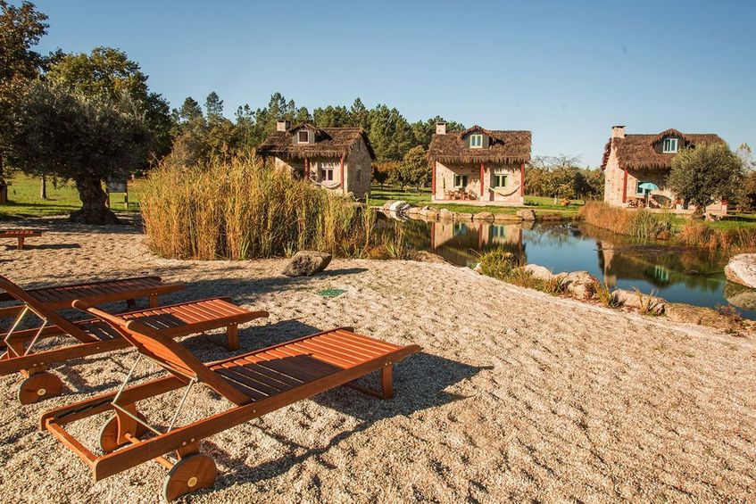 Uma quinta com oito hectares, árvores antigas, grandes maciços em granito, cogumelos e flores raras… onde, quando chega o pastor com o seu rebanho, o som dos badalos inunda o prado… mas é também… um pequeno aglomerado de confortáveis casas em pedra e telhados de colmo, que parece ter estado sempre ali, em volta da piscina biológica de águas cristalinas, que, nos dias de calor, desafiam a um mergulho… Apetece estar cá fora, apenas a observar a natureza, ou a saborear conversas…