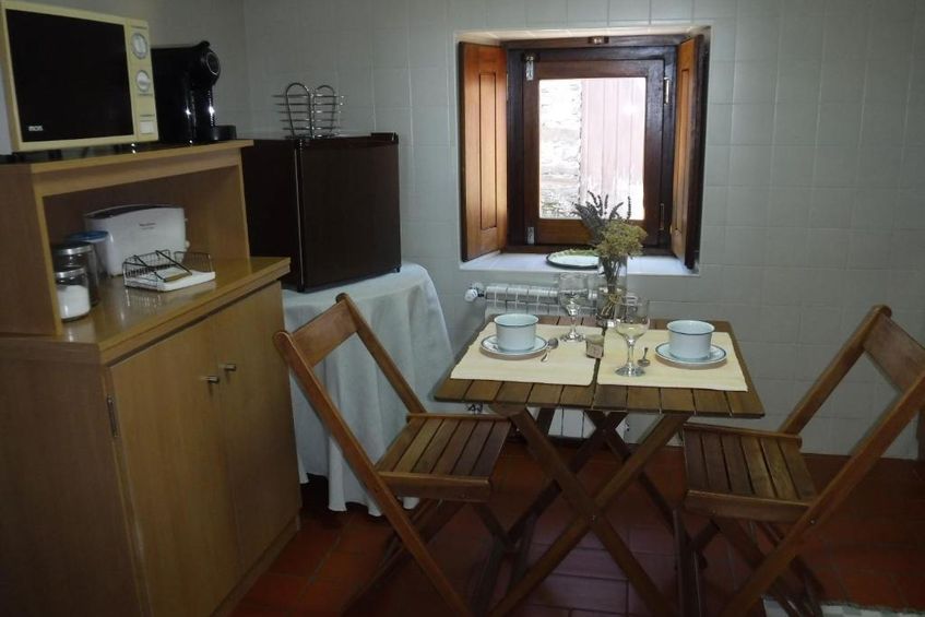 No piso de baixo são os quarto de casal com casa de banho privativa (com secador). Não tem acesso à cozinha, nem à sala. No quarto existe um mini frigorífico, um micro-ondas e uma chaleira, para que possa confecionar o seu pequeno-almoço (os componentes são fornecidos por nós). Tem também uma mesa e cadeiras, que pode usar para começar o dia com um pequeno-almoço ao ar livre, caso a meteorologia o permita.