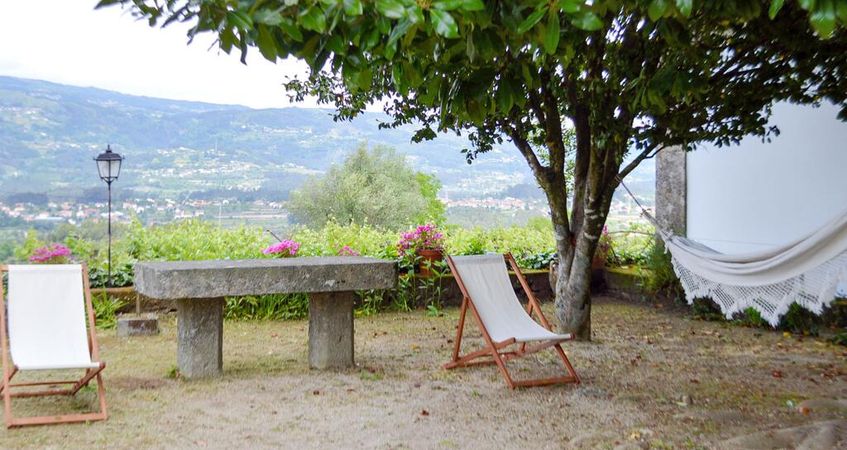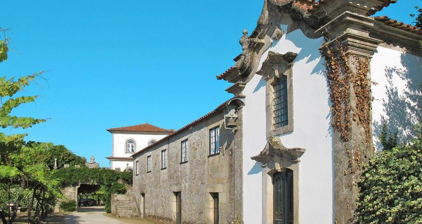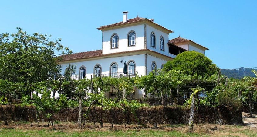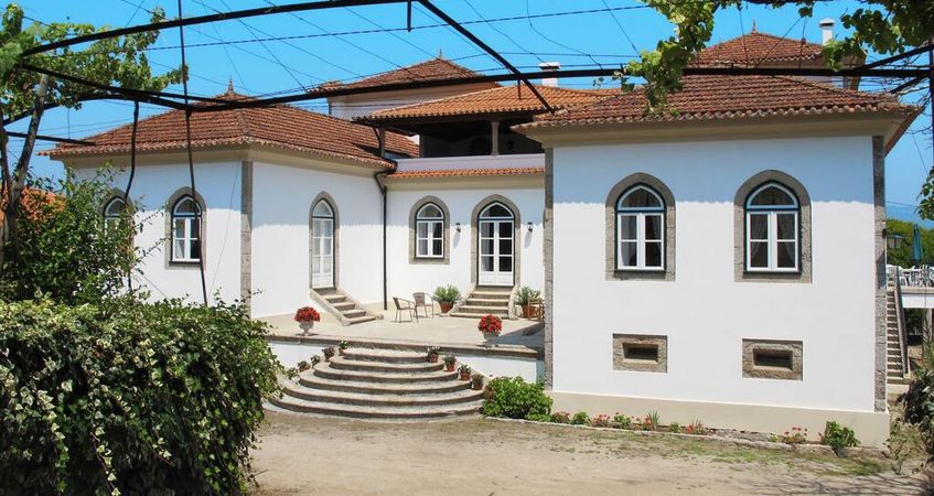 Com vistas deslumbrantes sobre o vale do rio Lima, rodeada por amplas alamedas com vinhas, jardim de buxos com velhas japoneiras de grande porte e uma magnífica piscina, a propriedade distribui-se por três edifícios principais: