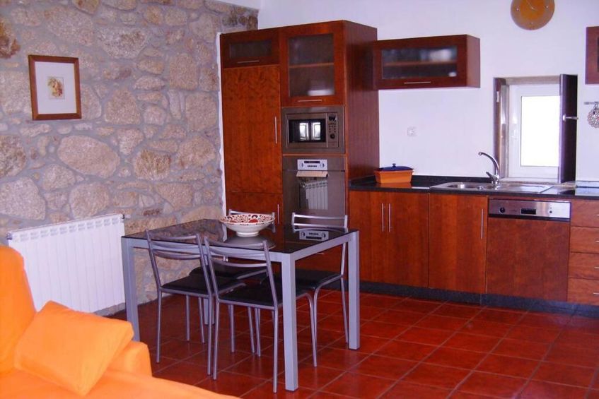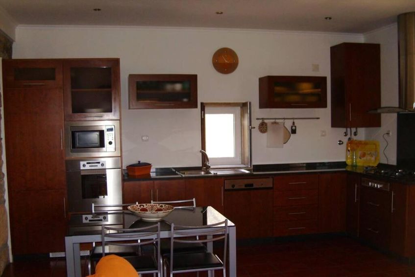 A casa é composta por 1 quarto com cama de casal e 1 quarto com 2 camas de solteiro, uma casa de banho com banheira, uma sala ampla com lareira e cozinha moderna totalmente equipada, incluindo máquina de lavar loiça e máquina de lavar roupa.