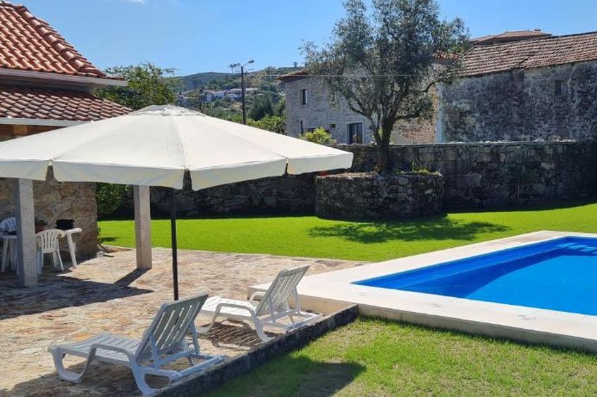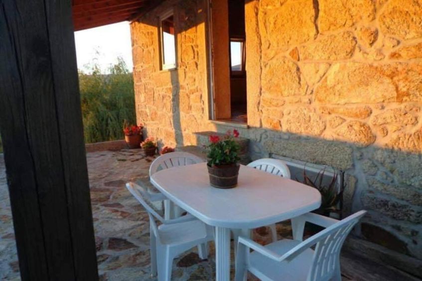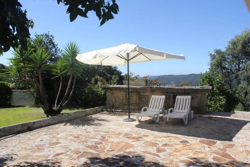 No exterior, em frente à casa, encontra-se o jardim, o qual possui uma eira em pedra e uma piscina onde pode mergulhar e refrescar-se. Ao mesmo tempo poderá desfrutar da bela paisagem, contemplar um pôr do sol, preparar um churrasco ou simplesmente relaxar.