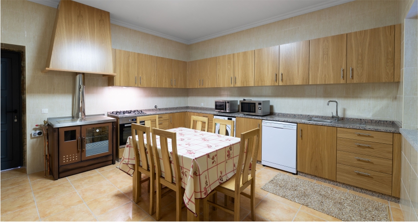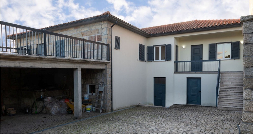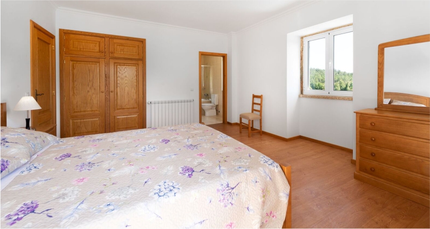 A Casa principal, que pode ser dividada por duas casas, de decoração moderna, 1ª andar, com 3 quartos e Casa R/c com 2 qaurtos. Ambas estão disponibilizam cozinha equipada, casas de banho e sala de estar. Todos os quartos estão equipados com casa de banho privativo, aqueciemnto central e TV e há internet na sala de estar.