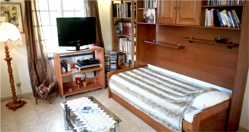 2 quartos, 1 cama de casal e 1 sofá-cama. A cozinha esta totalmente equipada e a casa de banho é grande. Os clientes podem sempre contar comigo.