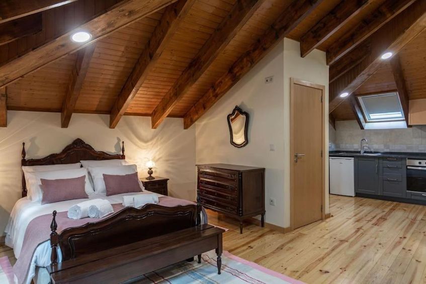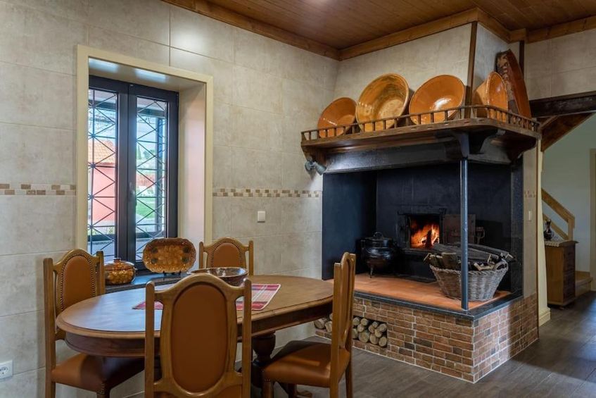 • Kitchen: Modern and fully equipped, with fireplace and old Portuguese oven;