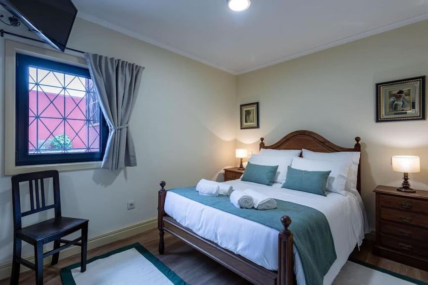 • Quartos: 5 quartos de casal, todos com wc privativo, tendo 2 deles uma cama extra. Todos os quartos dispõem de ar acondicionado, TV e internet;