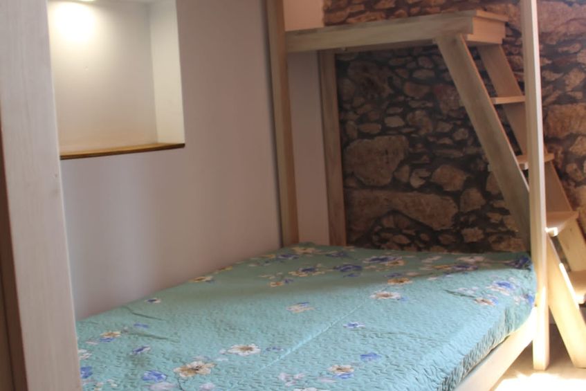 Engloba 1 quarto com cama de casal, 1 quarto com um beliche.