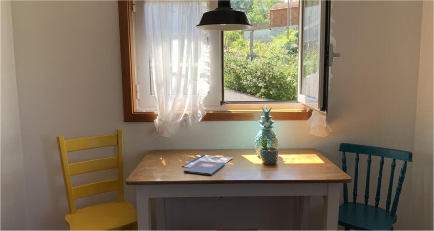Inserida numa quinta com pomar, a casa de campo, distingue-se pelo seu estilo Vintage. A casinha à porta dispõe de: 2 quartos (1 de casal e 1 twin); Cozinha; Sala de jantar/estar com salamandra; Ecrã plano; TV por cabo; Wifi; Estacionamento privativo.A quinta está toda cercada e tem uma cadela muito companheira "Pitty", daí os animais são bem-vindos.