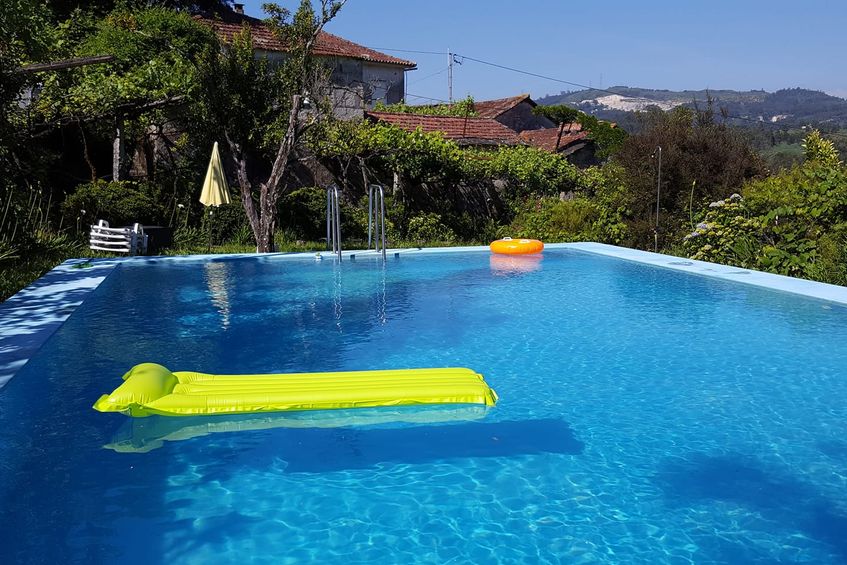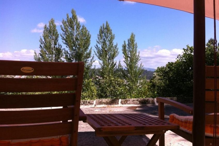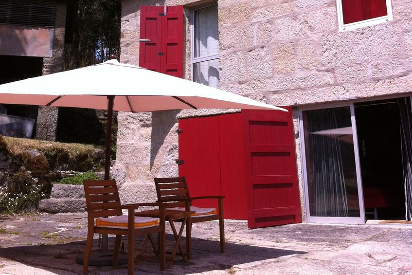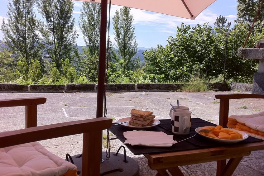 Um terraço, conhecido localmente como "a eira", onde os hóspedes podem desfrutar de vistas panorâmicas deslumbrantes e apreciar a serenidade do ambiente circundante. O jardim, com uma convidativa piscina, é o local ideal para momentos de descontração e lazer ao ar livre.