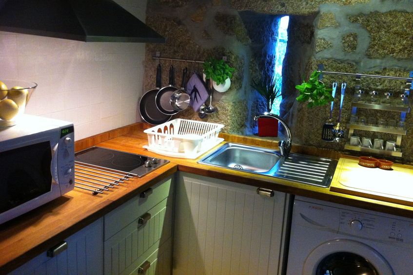 A cozinha equipada permite que os visitantes preparem as suas refeições, promovendo momentos de convívio em redor da mesa.