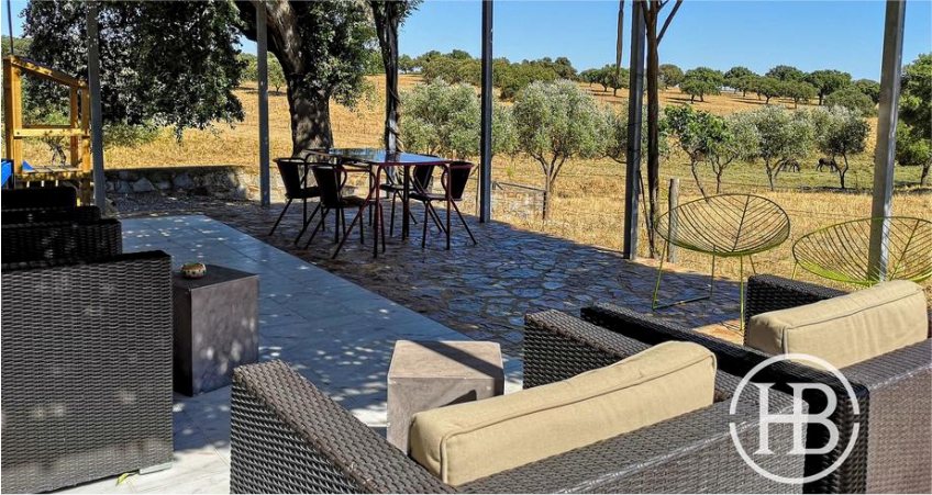 A CASA DA ALCARIA está integrada na Herdade do Burrazeiro. Trata-se de uma casa independente, cercada por pastagens e por sobreiros e azinheiras. Do pátio da casa, os ocupantes podem desf rutar da quietude da paisagem.