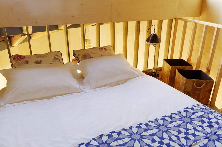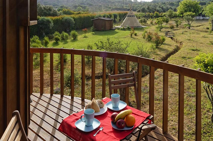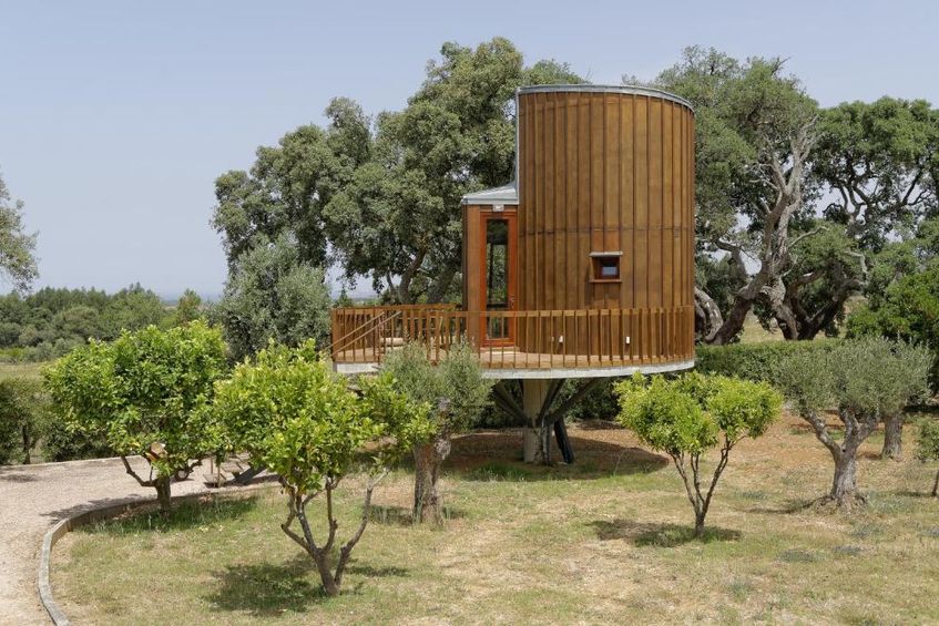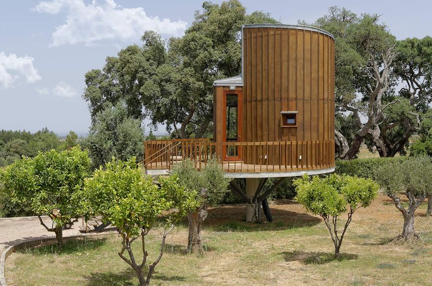 A Casa da Árvore é uma casa de madeira suspensa integrada nos Sobreiros e Oliveiras que a rodeiam, com um pequeno terraço com ampla vista sobre a planície e o mar.