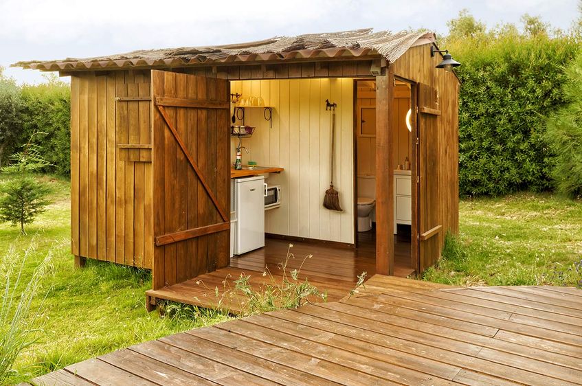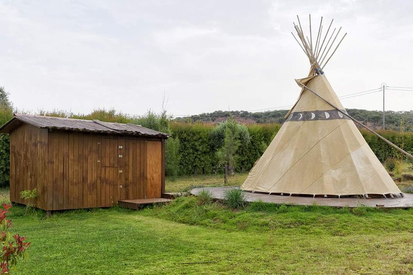 O Tipi é uma tenda dos Índios americanos Sioux que oferece uma atmosfera fantástica para crianças e adultos. O ambiente do seu interior proporciona uma experiência única. A tenda possui uma cama dupla com todo o conforto e duas camas extra individuais que poderão ser preparadas a pedido. Numa cabana de madeira ao lado da tenda existe uma kitchenette totalmente equipada, um wc com todo o conforto e um closet.