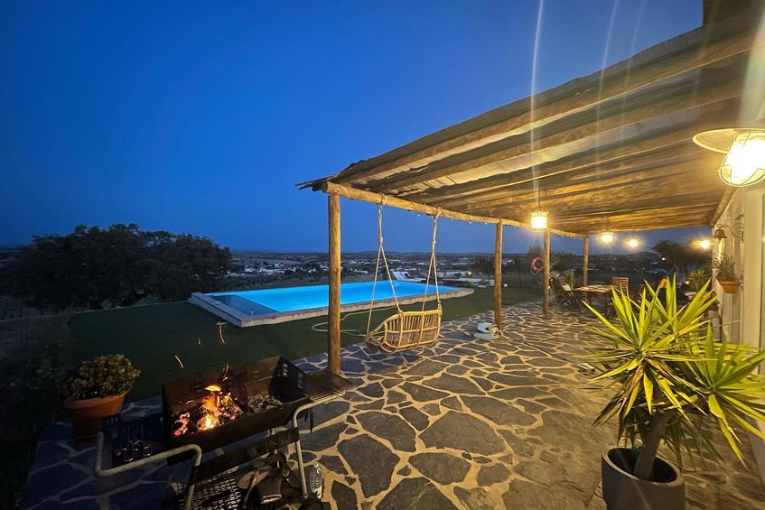 Monte tipicamente Alentejano, com cerca de 1,5h. Piscina e lareira, com vista infinita.