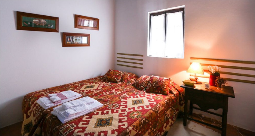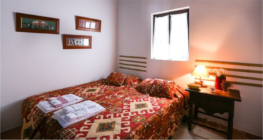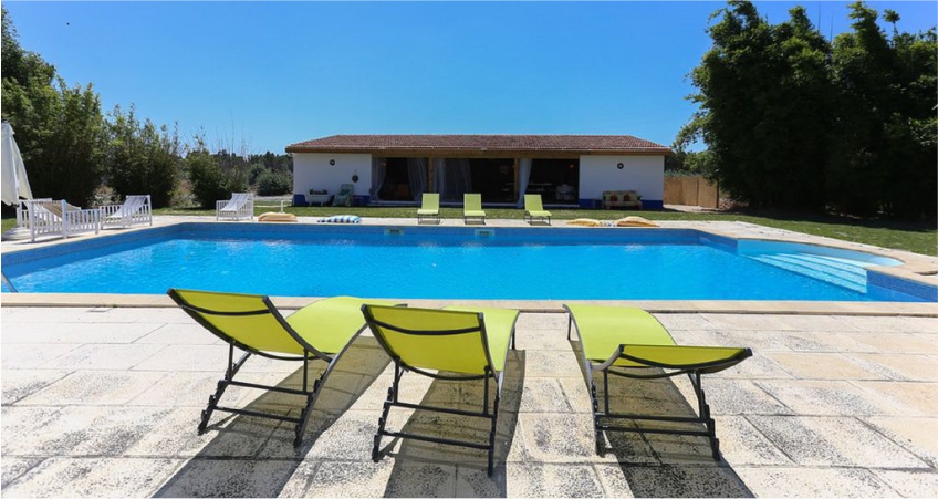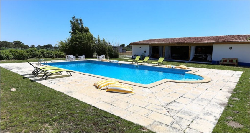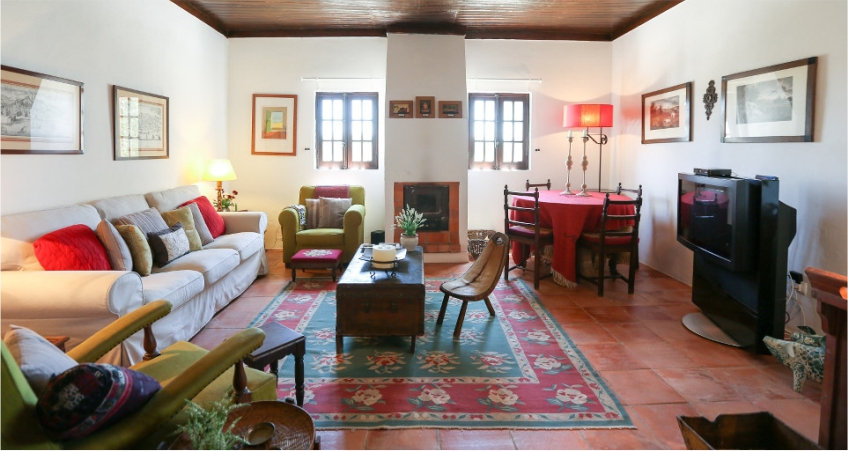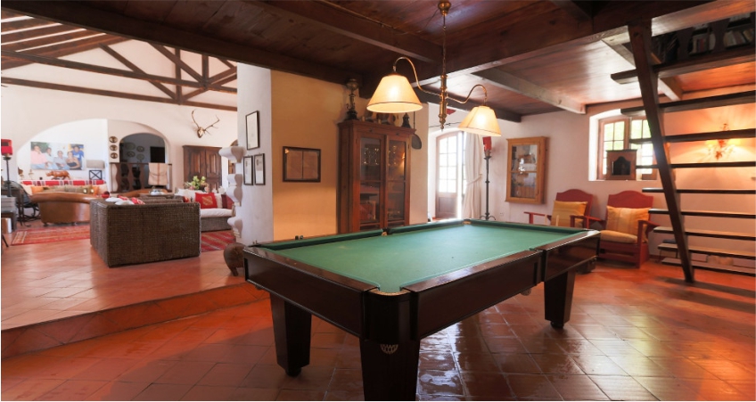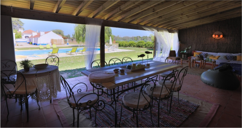 The outside areas are very comfortable and spacious. The garden is very big with a swimming pool, a volley ball field and a covered dinning area next to the swimming pool. Surrounding the house there are many pine and eucalyptus trees, silence, birds and incredible places to walk and loose yourself. It’s a great place for holidays or even to host a event.