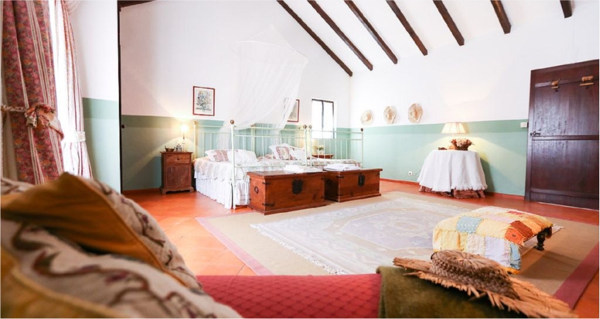 A casa principal, um dos “ex-libris” do monte, equipada e decorada com todo o rigor, requinte e conforto de quem geriu por largos anos uma loja e um “bazar” de decoração, caracteriza-se pelos vários pormenores e detalhes entre osamplos espaços internos e externos: uma equilibrada junção da típica traça local alentejana com alguns toques internacionais e uma mão-cheia de criatividade, requinte e bom “gosto”!
