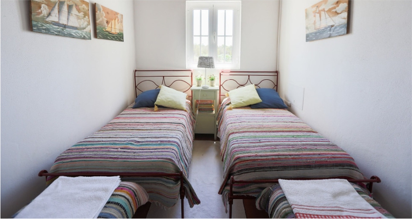 The house is divided into several parts, giving lots of privacy and quietness. On one side there are 4 bedrooms (2 double and 2 twin) that have 2 bathrooms. It also has a small living room area. Then there is the social area of the house with an ample living room, game room, dinning area, kitchen and terrace for outdoor meals. On the other side, there are 2 bedrooms with twin beds and one bathroom. Next to the social area there is a big kids bedroom with 5 bunk beds and its own bathroom. In total the house can sleep up to 22 people.