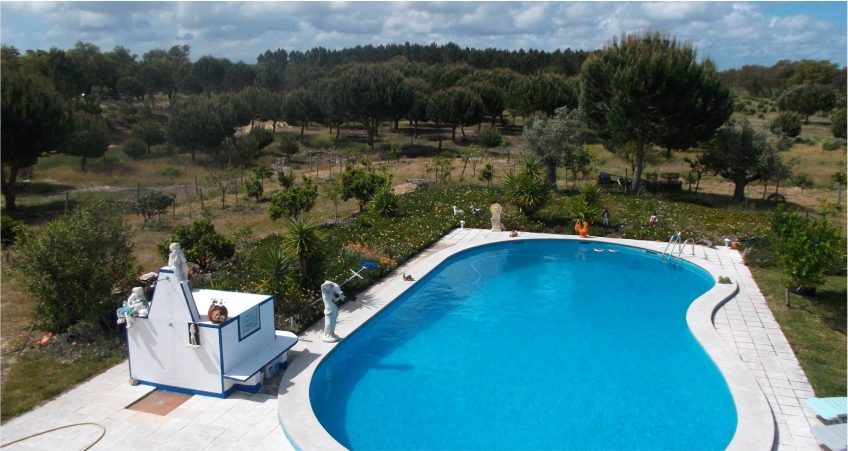 Monte Alentejano, com 6Ha, casa com 5 quartos, 4 Wc, piscina c/ 100m2, churrasqueiras, forno a lenha, lago com achigás, local aprazível e tranquilo a 110 km de Lisboa, 3 da A1 e 20 das praias