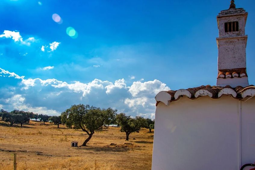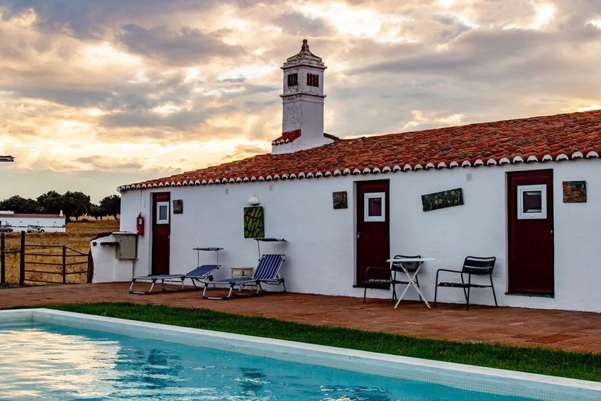 Monte do Vale is a typical Alentejo estate, restored for rural tourism. The 106-hectare estate lies in a valley of holm oaks, where there is a small dam and where cows are kept.