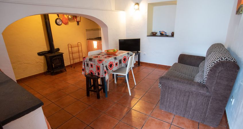 A sala dispõe de lareira com porta de vidro, kitchenete com fogão, frigorífico, televisão, torradeira, micro-ondas, chaleira eléctrica, secador de cabelo, máquina de café, etc