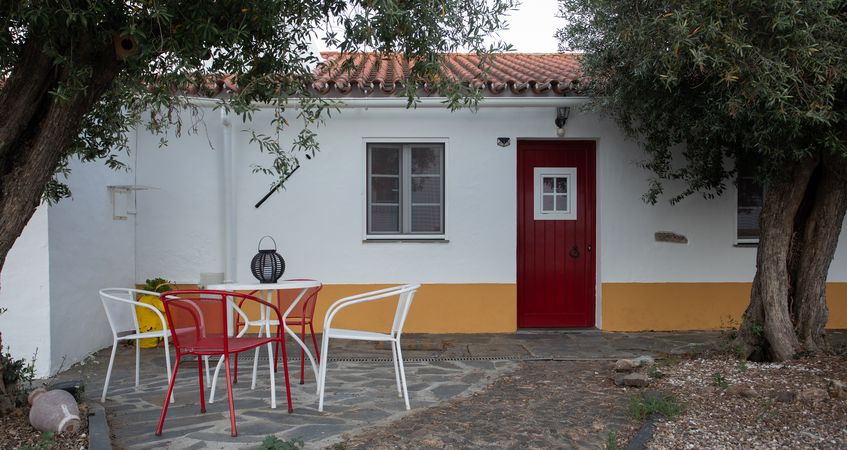 O estilo da traça Alentejana com o conforto moderno. Todas as Casas têm um quarto, casa de banho e sala de estar com kitchenete devidamente equipada. No exterior têm um pátio individual com mesa e cadeiras onde também poderá disfrutar das suas refeições.