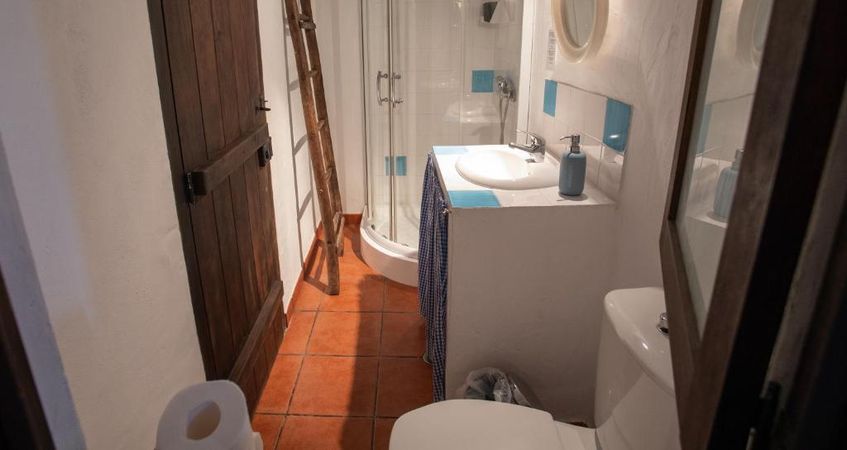 Com capacidade para dois adultos, podendo sob consulta acomodar até duas crianças, A Casa Azul possui um quarto com cama de casal, quarto de banho e sala onde se poderá colocar a cama single.