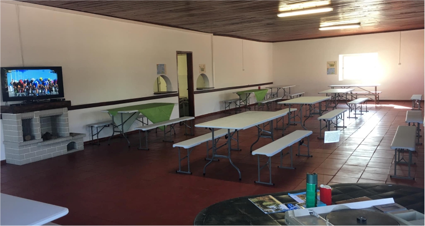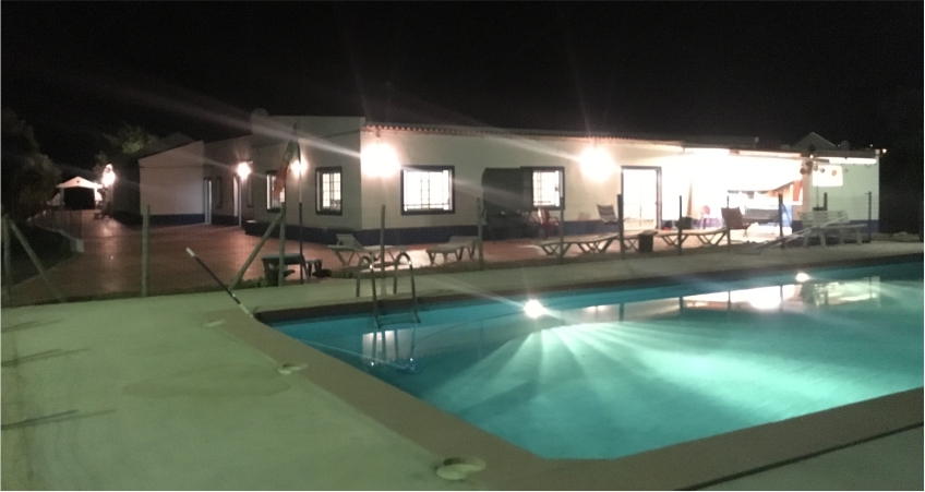 25 quartos, piscina, polidesportivo de 460m2, picadeiro, salão convívio de 116m2, churrasqueira, forno a lenha etc