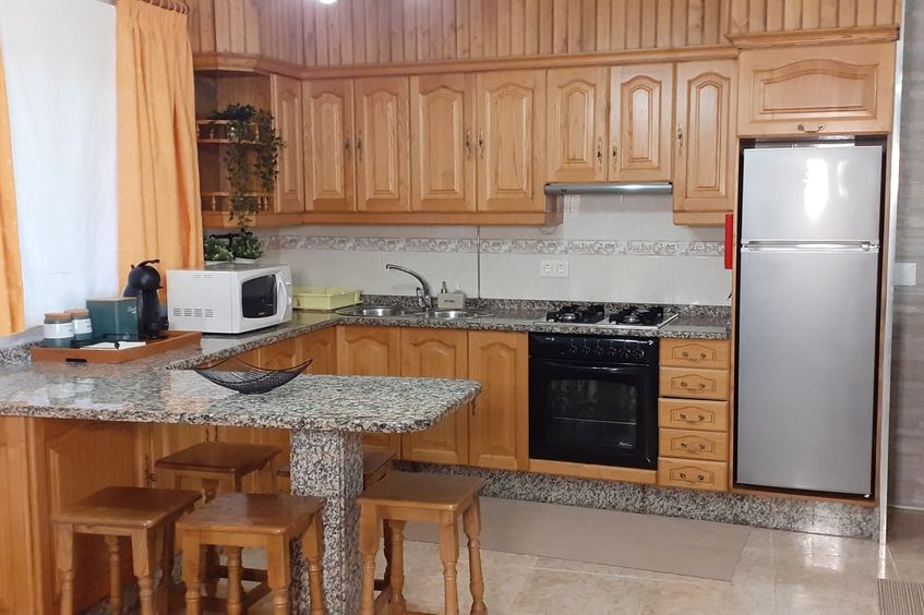 Inclui 3 quartos, uma cozinha equipada, 2 casas de banho e sala de estar/jantar, wi-fi, televisão, churrasqueira e estacionamento no local.