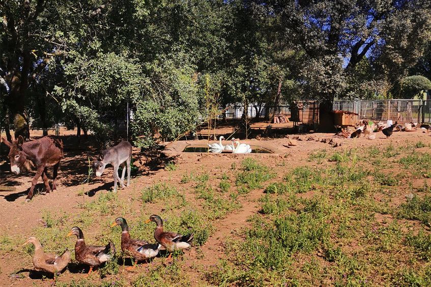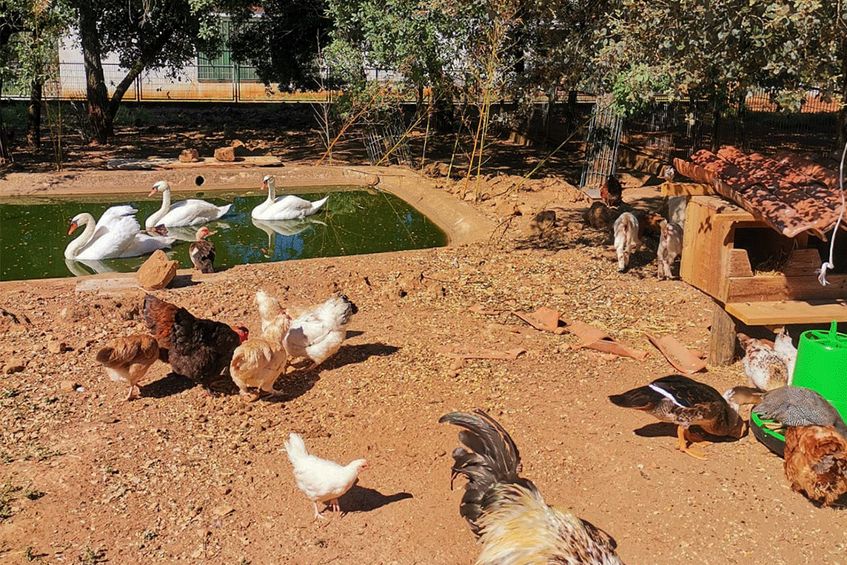 We are a farm with around 120 hectares of land, and we have various endogenous products available, such as sheep's cheese (fresh, cured, with oregano or piri-piri), olive oil, red wine, whole walnuts, kernels and caramelised walnuts, vegetables, marmalade and pine nuts... All our endogenous products are available for purchase. We have an educational area where guests/visitors can take part in feeding the animals (cows, sheep, goats, fallow deer, mouflon, donkeys, garranas, ponies, ostriches, chickens, ducks, peacocks, swans, fish, rabbits, turkeys, guinea pigs, parrots, jays, crows, pigeons, wild boars, Vietnamese pigs, pigs...) and interact with them.